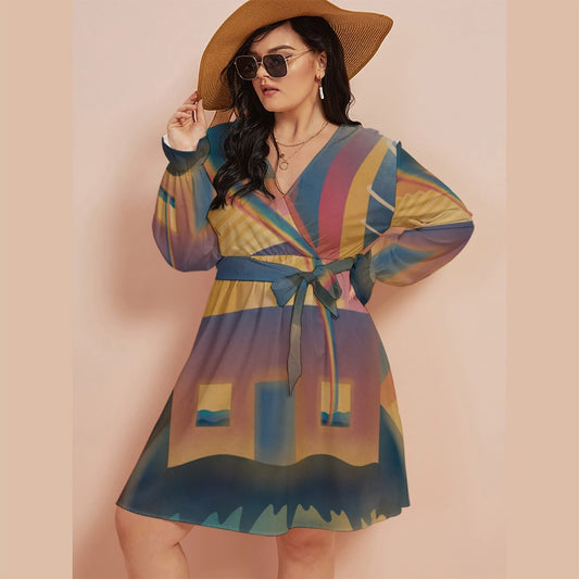 "Chromatic Aberration" - V-Neck Dress