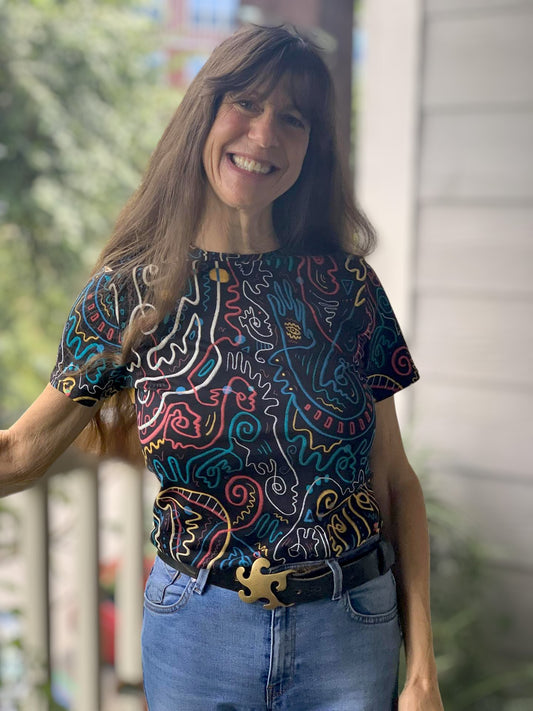 "Artsy Joyride" - Women's Shirt With Black Lace Sleeves
